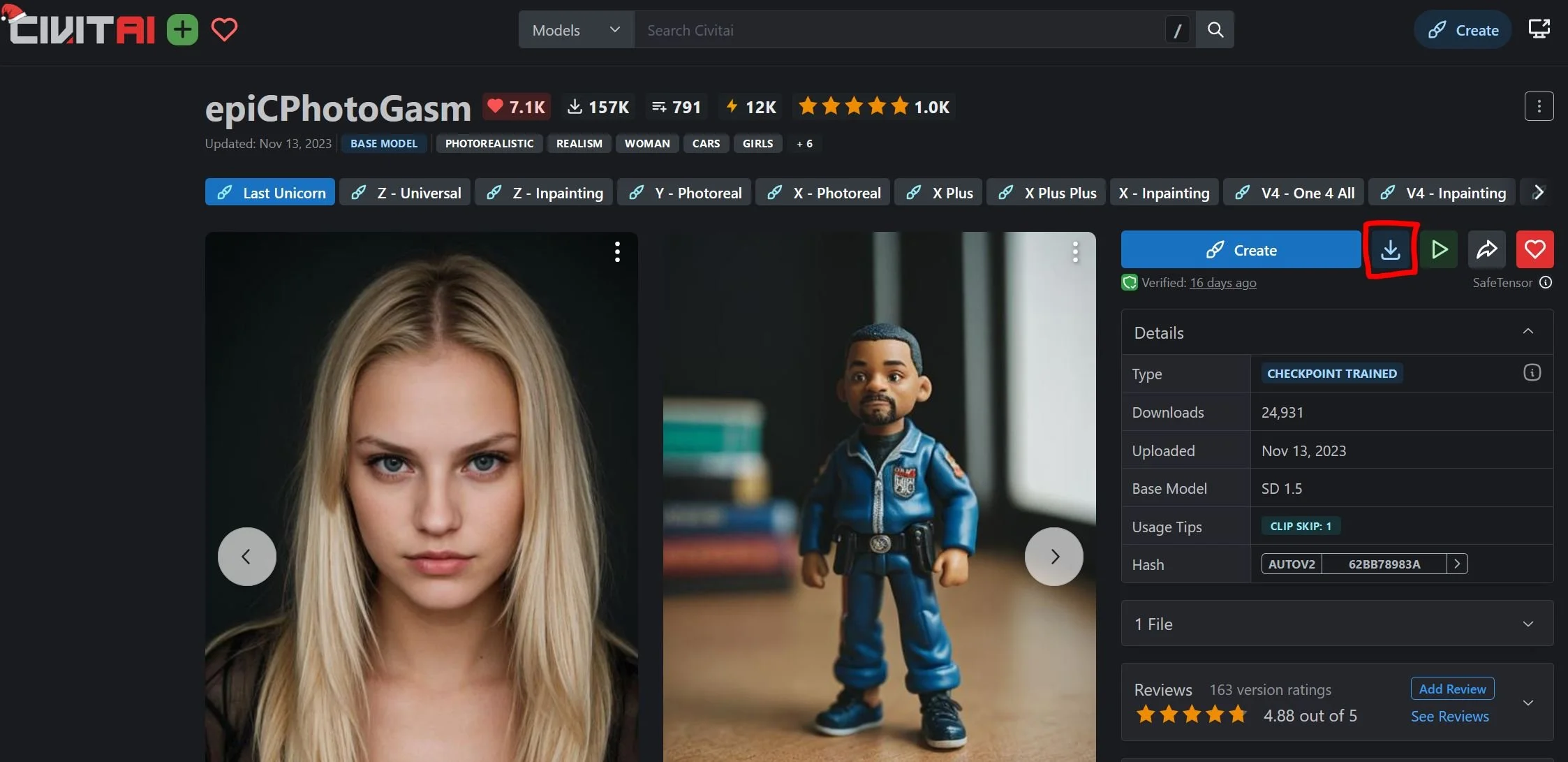 The model that comes with SD isn’t very good, so we need to download a more recently trained model for our needs. A “model” also called a “checkpoint” is a single file that contains ALL of the imagery we use when generating AI art. On first run you may have notice a 4GB file that was downloaded, that is Stable Diffusion v1.5, which is in our model directory here: